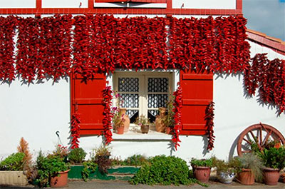 Piment d’Espelette deelt zijn naam met een klein dorpje in Frans Baskenland: Espelette. Het is daar, en in 9 omliggende dorpjes, dat deze speciale kleine peper gekweekt wordt.