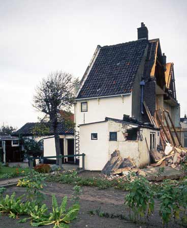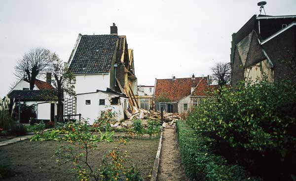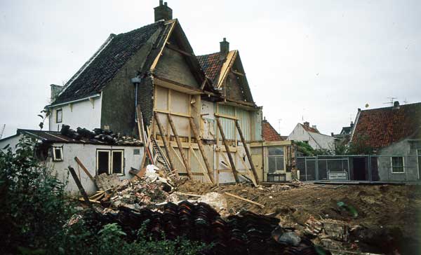 De panden zijn volledig uit nieuwe materialen herbouwd. De nog bruikbare oude materialen, zoals oude steentjes, tegels en ornamenten zijn afgevoerd en hebben we nooit meer terug gezien.